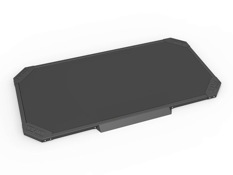 Конструкция помоста усилена металлическим профилем по периметру. Предотвращает деформацию краев, расслоение резинового покрытия и подчеркивает премиальный статус оборудования. Углы скошены для минимизации риска случайных травм об острые углы при перемещении в районе помоста.