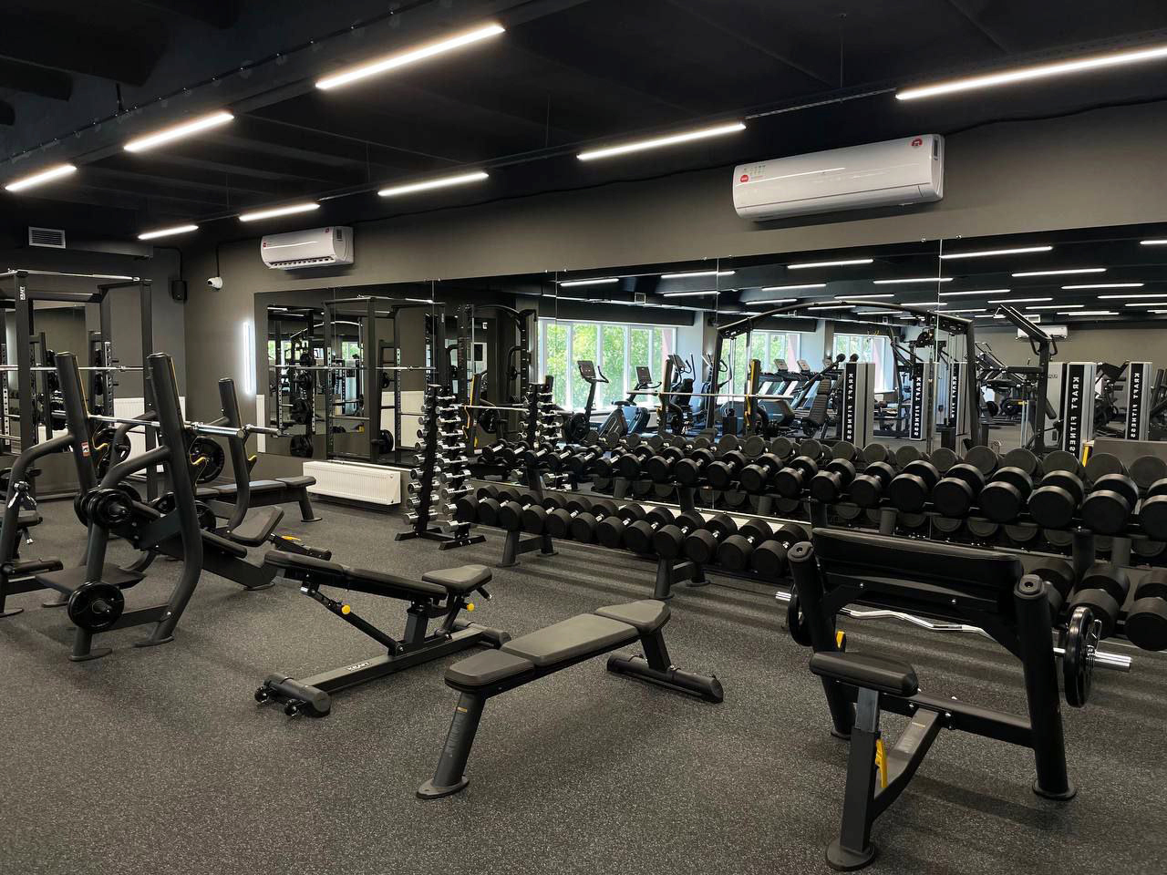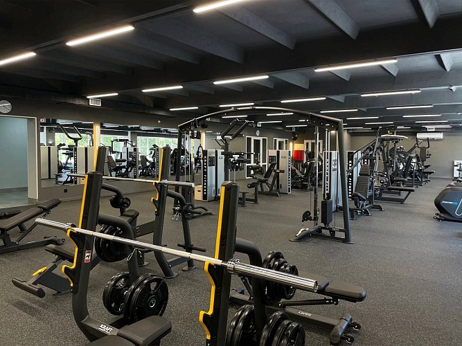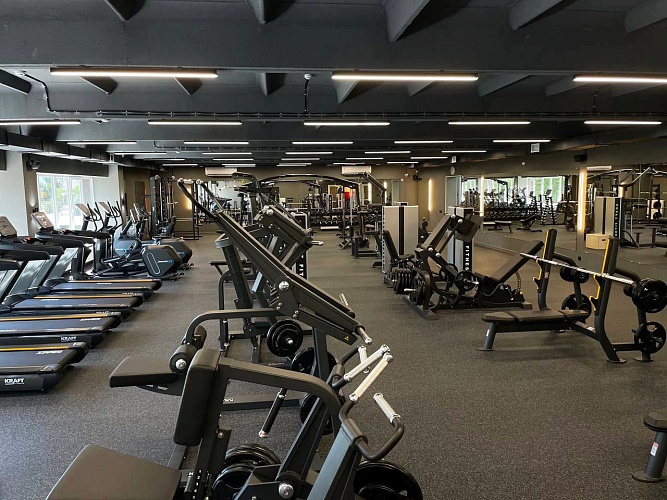 Силовая зона впечатляет разнообразием тренажеров: премиальная линия EXACT с белой контрастной прострочкой подушек, а также нагружаемая дисками линия PL c мощными рамами из высококачественных стальных профилей с толщиной стенок 4 мм. Они позволяют эффективно прорабатывать все группы мышц. Для любителей свободных весов предусмотрена полноценная зона с полным набором скамеек и стоек линии PRO, гантелей, олимпийских дисков, грифов и рукояток. Всё оборудование соответствует международным стандартам безопасности и рассчитано на интенсивную эксплуатацию.